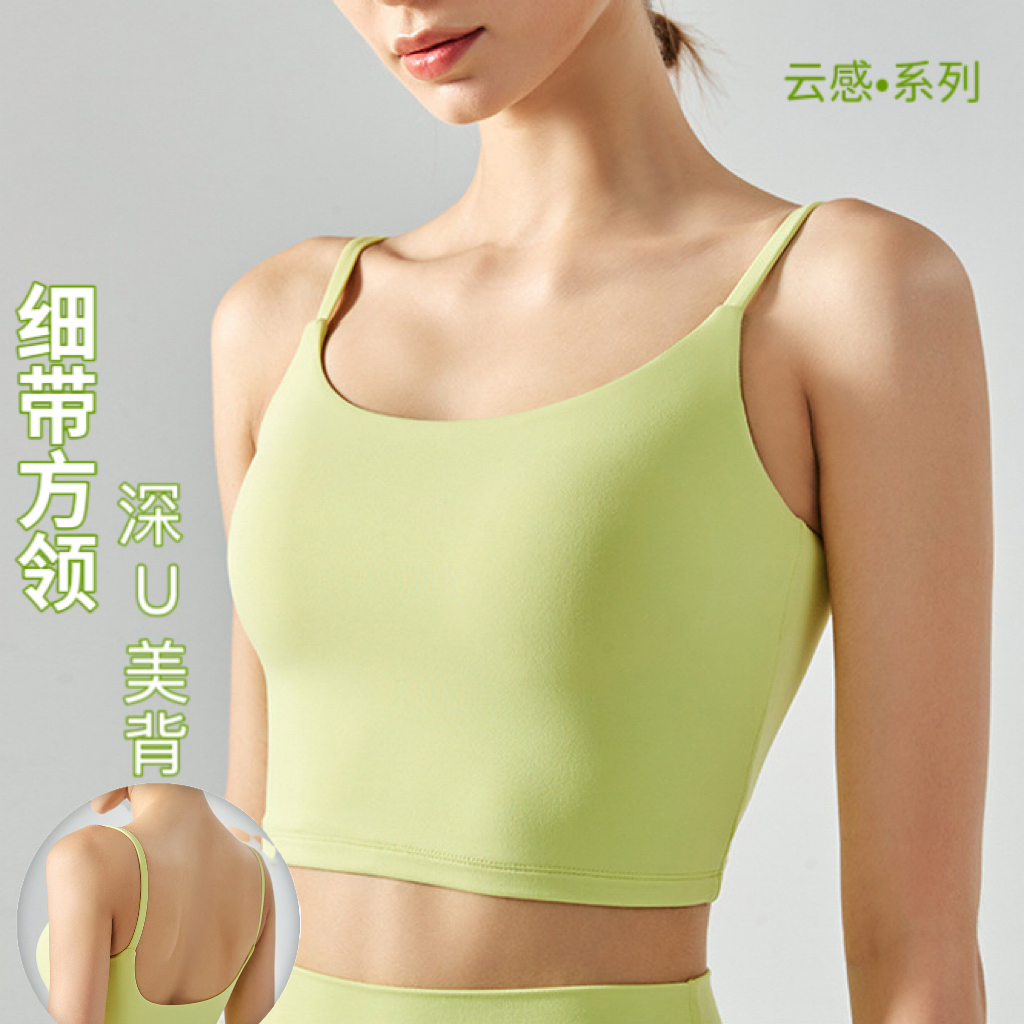 糯软瑜伽背心 女 带胸垫无痕美背 方领吊带瑜伽服